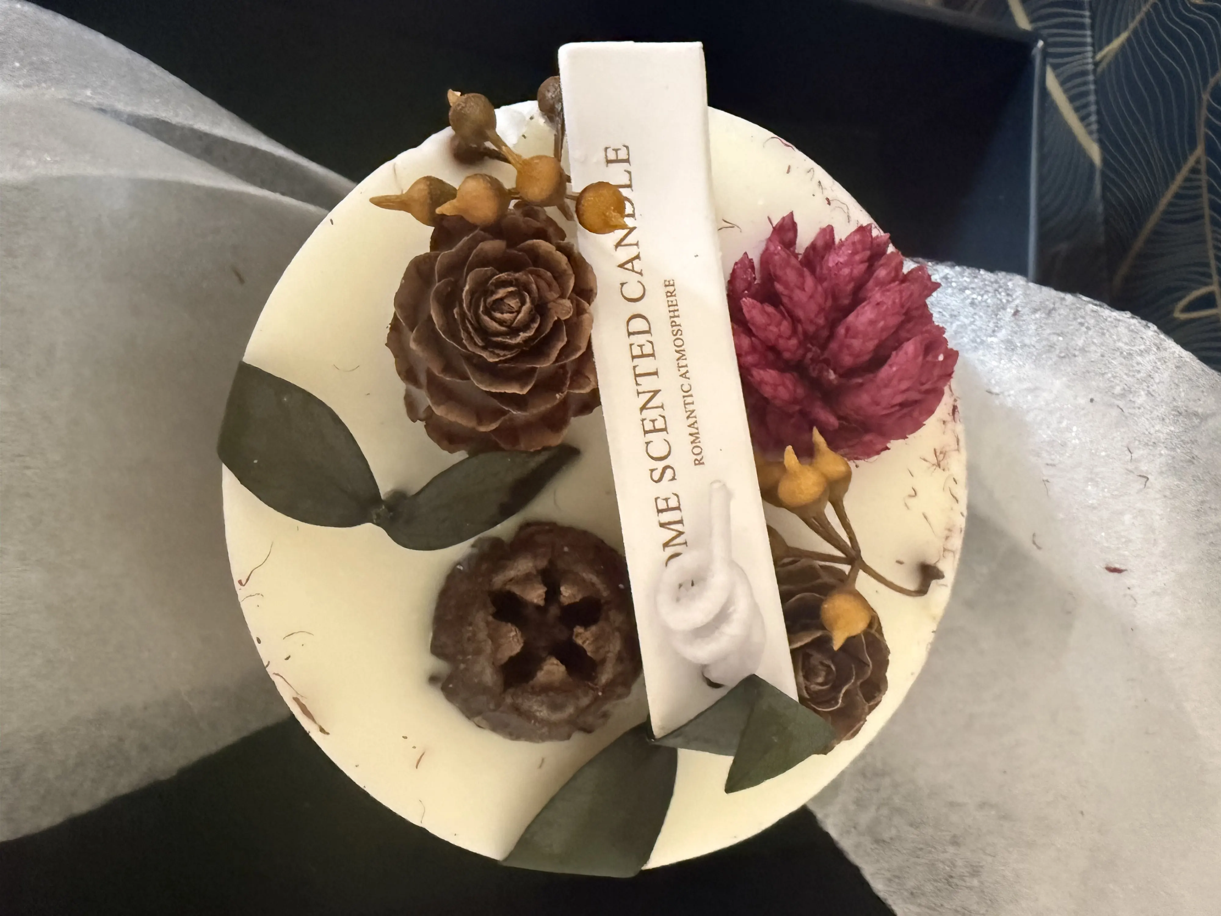Lüks özel Logo soya balmumu aromaterapi el yapımı kurutulmuş çiçek kokulu ev dekorasyon düğün noel cadılar bayramı paskalya